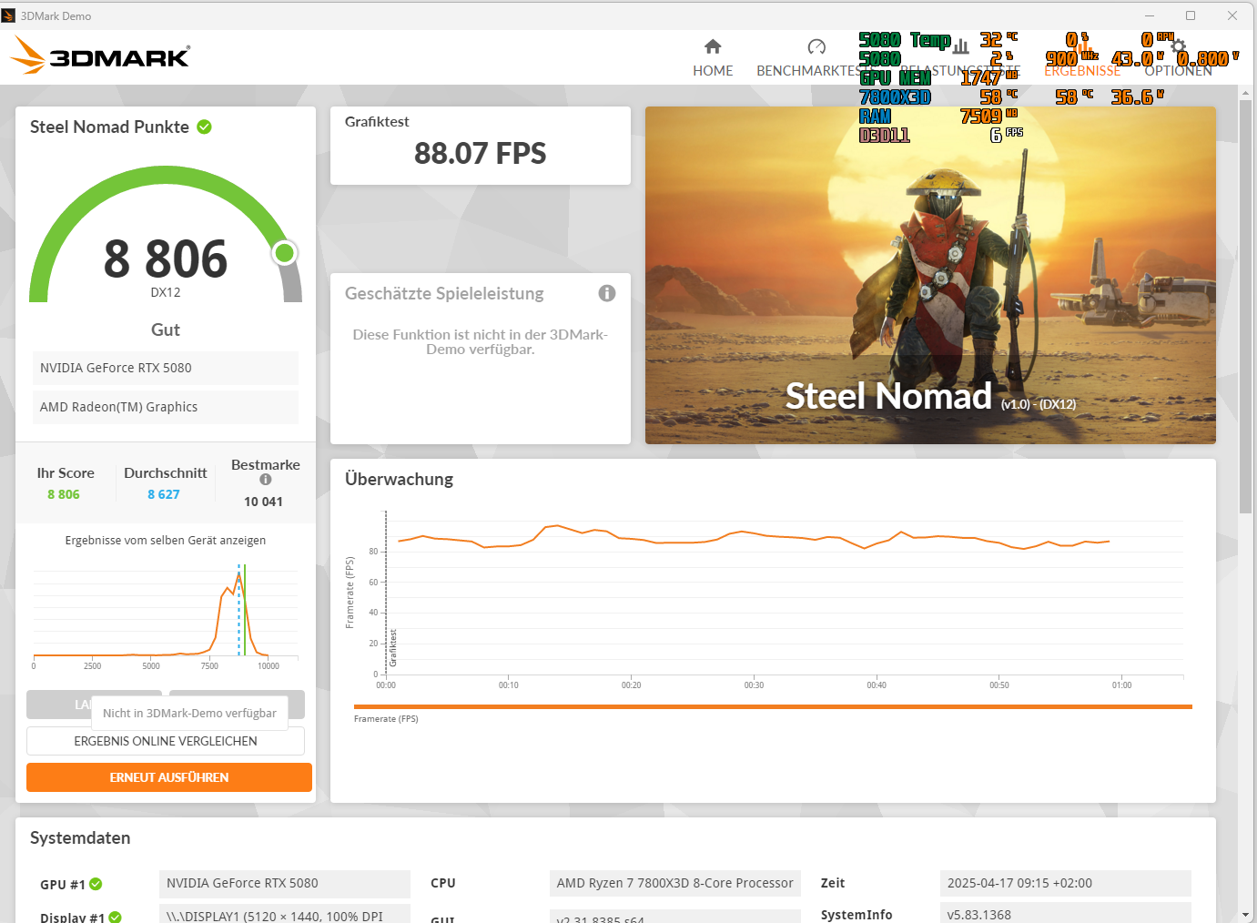 Wie das? Hattest du die 4090 auf default?Youngtimer schrieb:Die RTX 5080 haben ja inzwischen bekanntlich sehr viel Overclocking Potential. Bei mir war es hier im Benchmark +17% und mit 9493 Punkten liegt sie auch knapp überhalb der 4090.