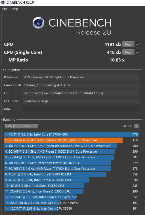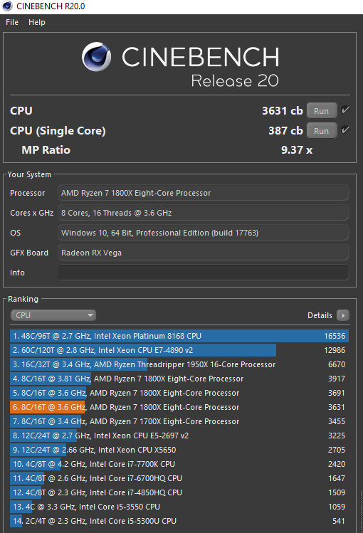 Wenn ich nicht gleich nen Bluescreen bekommen hab, ist Cinebench abgestürzt, oder Windows eingefroren, sprich Tastatur bzw. Maus und Monitor hat nicht reagiert (Lustiger Weise konnte ich über mein Smartphone weiterhin am PC Spotify steuern xD). Kamm meistens so ca. nach 15-20 Sekunden.Toprallog schrieb:Was waren die Symptome?