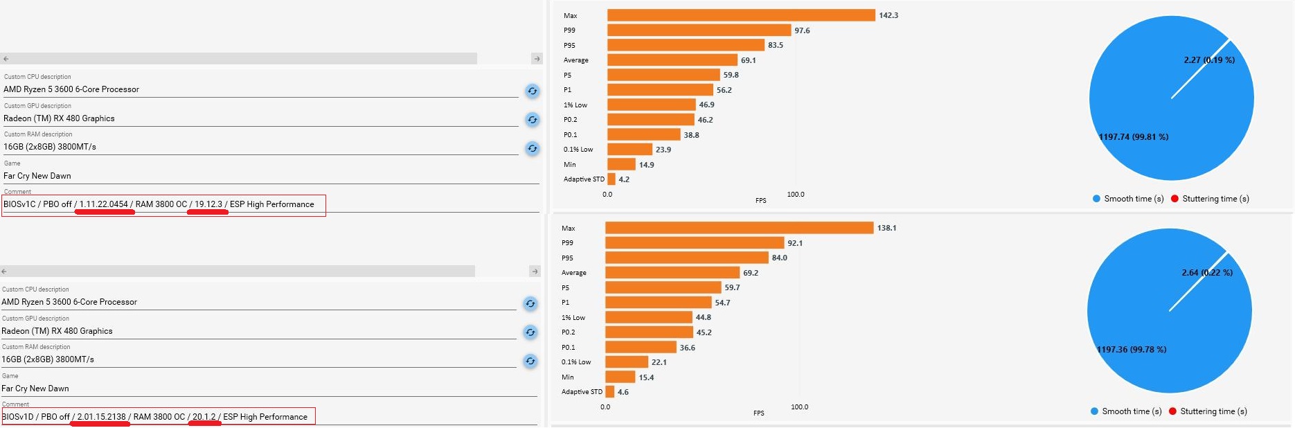 Hier mal zum Vergleich der alte Chipsatz Treiber und der alte GPU Treiber mit den neuen im Spiel Far Cry New Dawn, bin immer die die gleiche Strecke gelaufen.