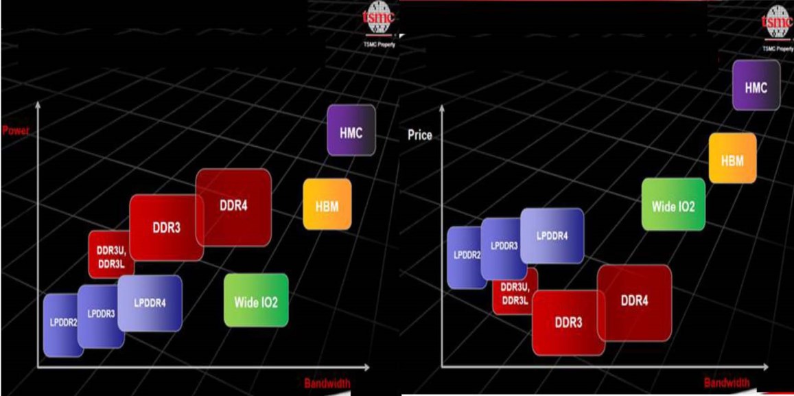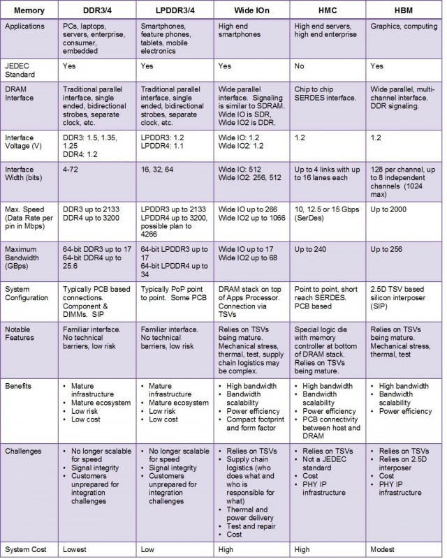 HBM is the “middle” option as far as cost and bandwidth — it’s not as cheap as Wide I/O, or as power efficient, but it’s explicitly designed for high performance GPU environments and still should be cheaper than HMC.