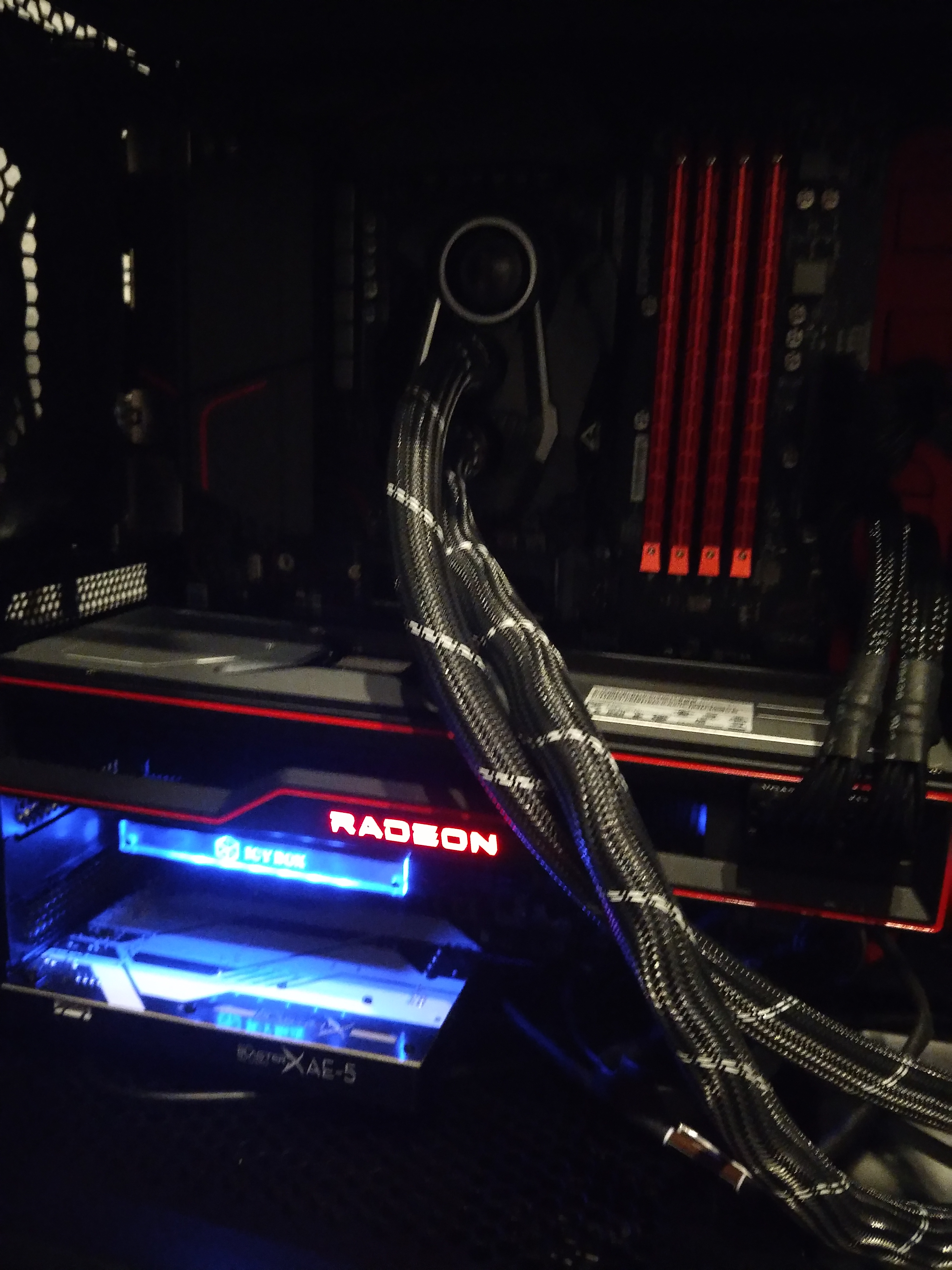 Mit einem leichten auto overclock aus der Radeon Software boosted die Karte dauerhaft auf knapp über 2400Mhz, nen richtiger Rennwagen!