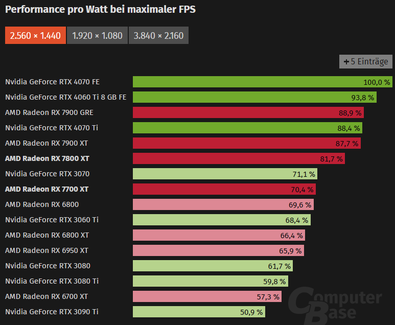 Gegenüber einer 7800XT sind es 25W Unterschied, und AMD ist klar langsamer.