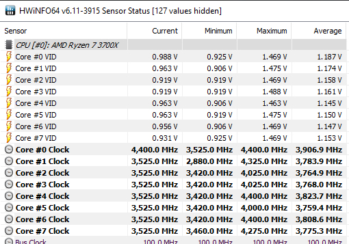 EDIT2: Make it six. - Jetzt hat gerade auch der sechste Kern kurzzeitig auf 4,4 GHz geboostet.