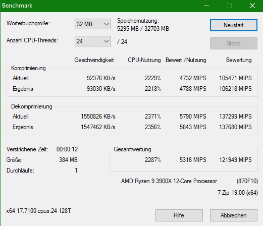 7zip schwankt, aber es schwankt nicht so weit runter, wie im Video zu sehen.