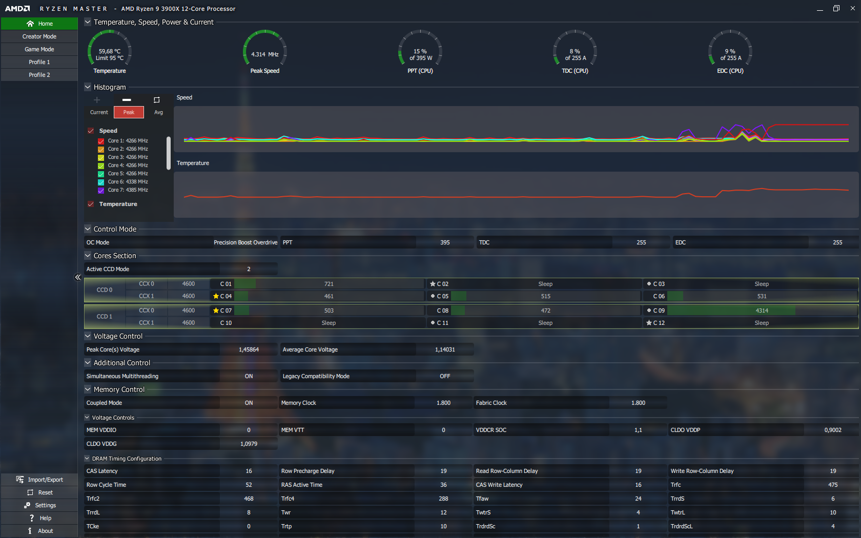 Singlecore sieht das anders aus, da bleibt die CPU dann zwischen 4500 und 4575MHz allerdings mit 1.495 - 1.526 Volt auf dem aktiven Kern (ist board seitig so, vcore steht auf auto ohne Offset)
