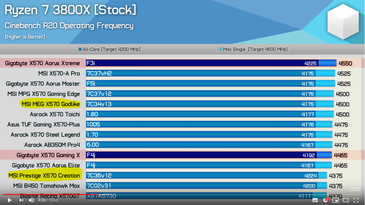 Gigabyte x570 mit 1.0.0.3AAB erreicht einen single Boost von knapp über 4,6GHz. (HW unboxed)
