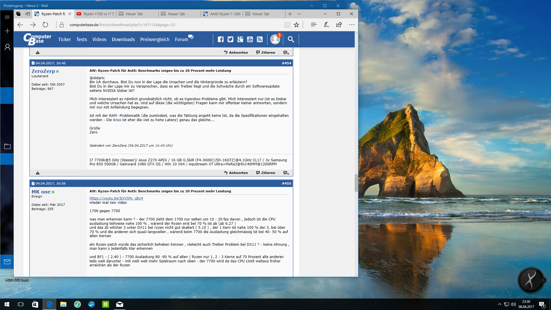 Auch ich habe die Stunden gezählt, bis die ersten offiziellen Tests zum Ryzen erschienen sind und habe am D-Day den ganzen Tag damit verbracht, mir alle Tests, Benchmarks etc. detailiert zu Gemüte zu führen.