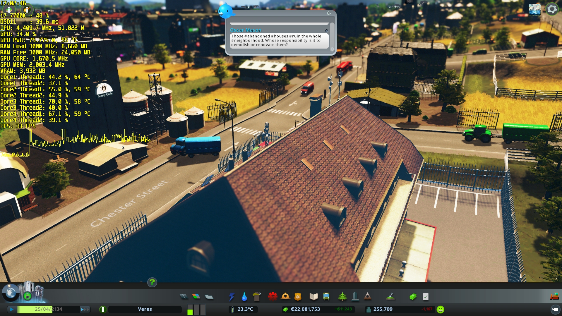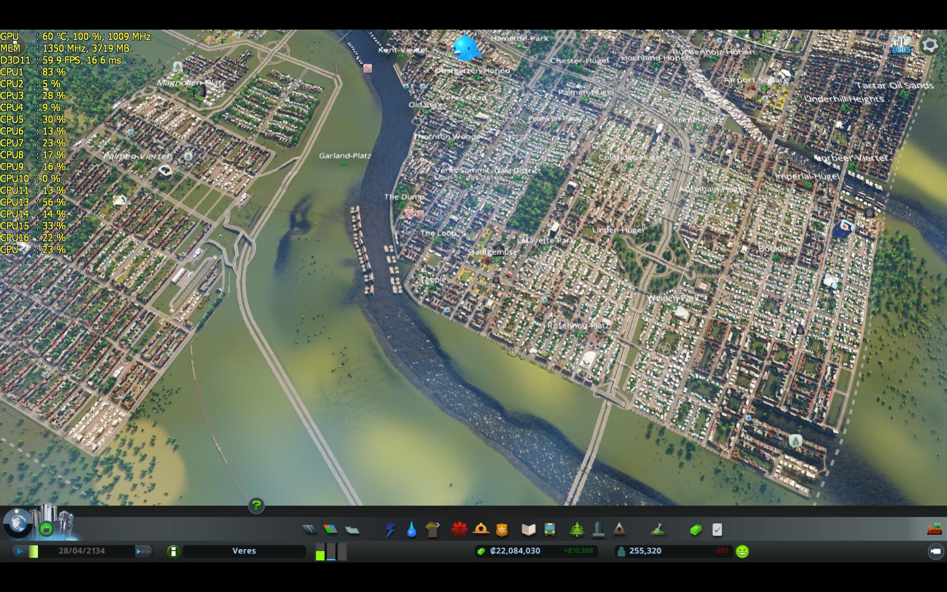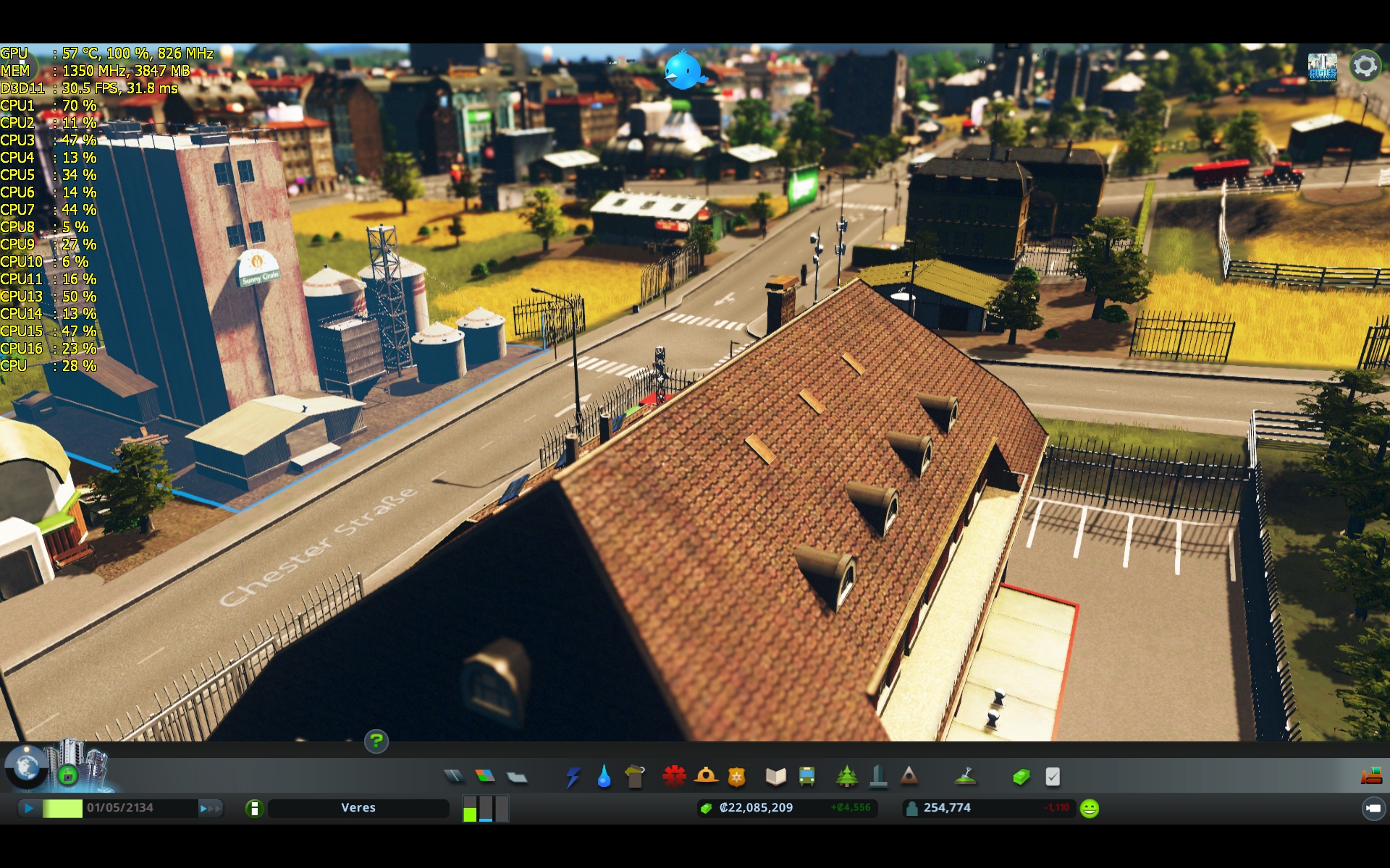 Hier meine Resultate zum Cities: Skylines savegame. Auf 1080x1920, alles auf maximum. (Mein Schirm ist eigentlich 1920x1200, aber der Vergleichbarkeit wegen.)