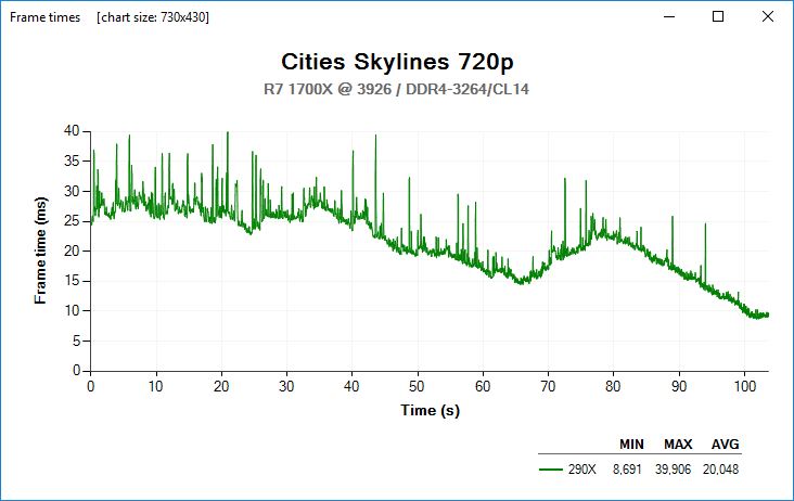 Hab mal testweise verschiedene Threads der Reihe nach zugewiesen. Bis 5 Threads steigert sich die FPS bis maximal 57 FPS wenn ich ganz rauszoome, dann werden die Frametimes nur noch besser. Ich denke hier fehlt einfach weiterhin massiv CPU Singlecoreleistung. Müsste mal jemand mit Ryzen durchtesten, da sind ja 8 Kerne und 16 Threads da.