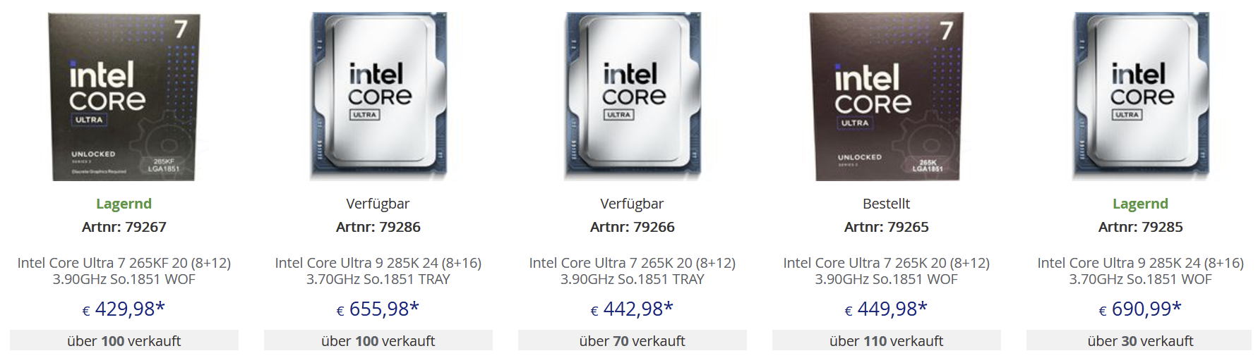 Mindfactory hat von der gesamten Core Ultra Generation in Summe noch keine 1000 Stück verkauft.