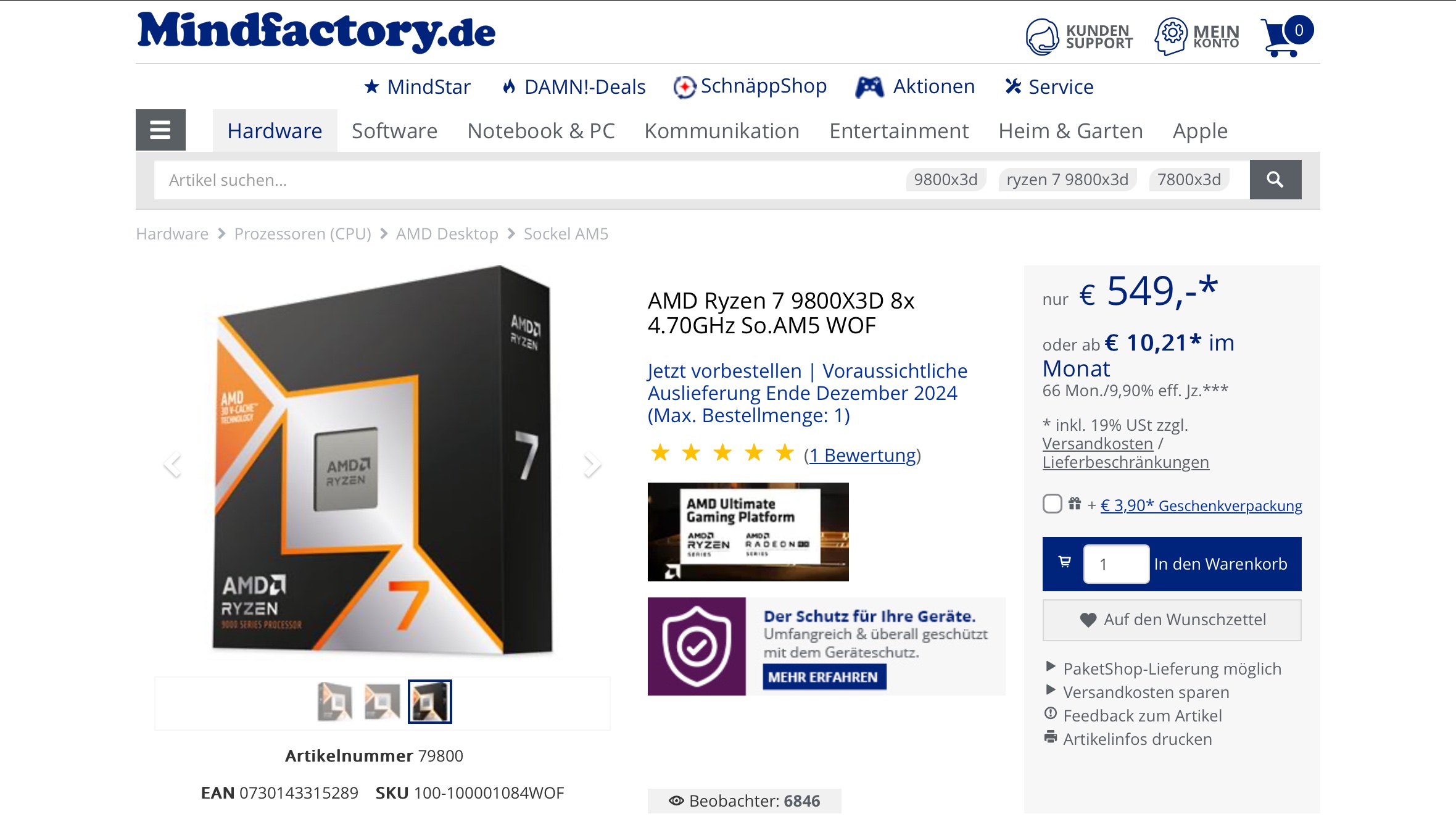 SKu schrieb:Ich finde Mindfactory zu geil. Ich habe am 07.11 bestellt als noch lagernd stand und habe auch eine Bestellbestätigung bekommen. Wann die CPU geliefert werden soll, weiß ich nicht. Nicht einmal eine eMail mit einer Entschuldigung kam bislang an. Ich werde mir wohl stark überlegen, ob ich in Zukunft auch noch bei Mindfactory etwas kaufe. Dezember bzw. Januar 2025 wäre ein Brett. Da erwarte ich als Kunde zumindest eine Information seitens des Händlers.