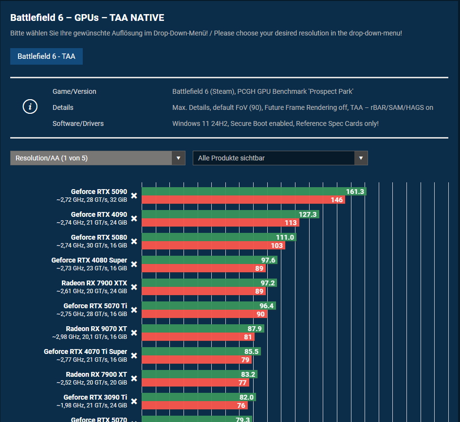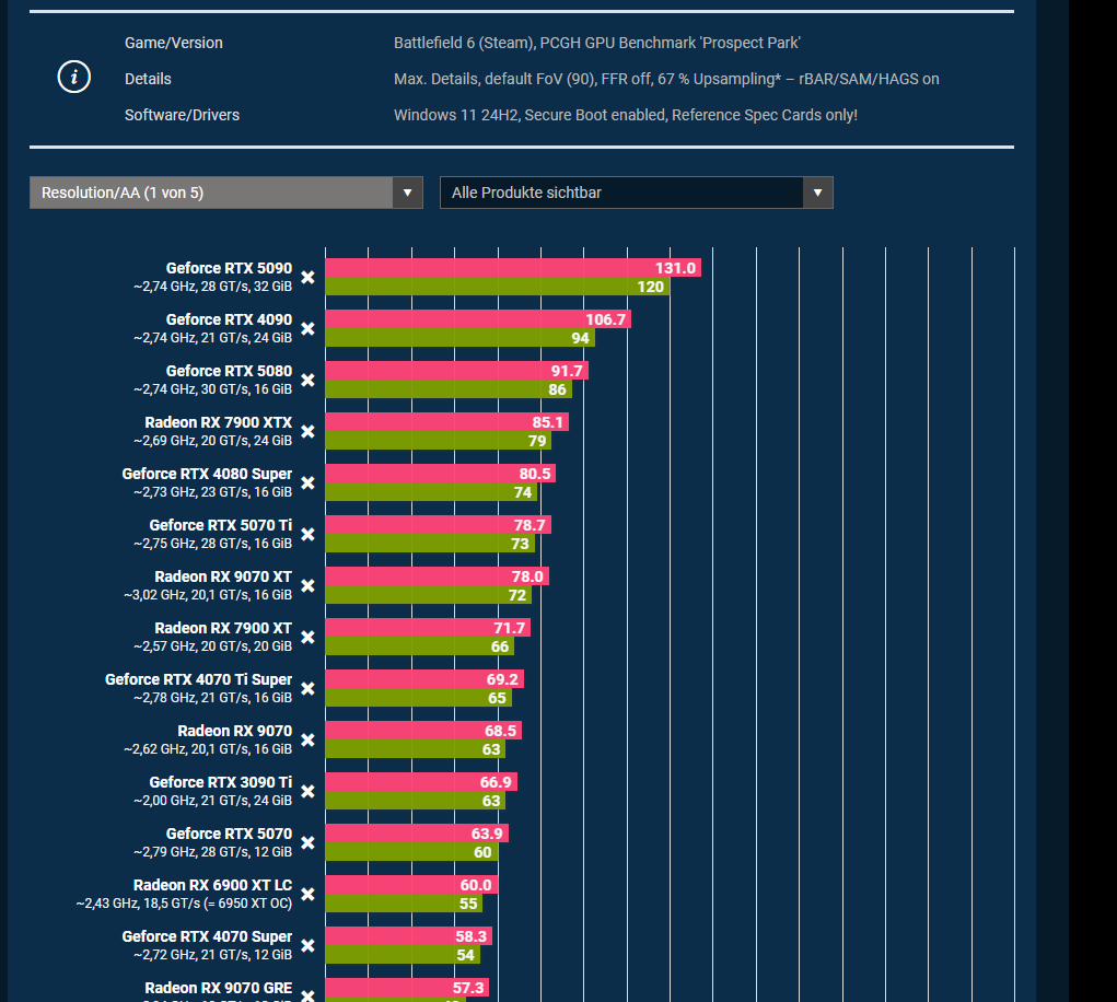 Nur über die gängigsten Spiele ist man auch mit einer 5090 und recht aktuellen CPU aus der Riege AM4/Raptor/Arrow oder AM5 i.d.R. (übrigens die Abkürzung solltest du lernen, da sie 3x mal im Ursprungspost auch verwendet wurde und du sie nciht verstehst) bei höheren Auflösungen nicht CPU Bounded. Es gibt so Games wie Anno, die evtl. noch von einem 9800x3d profitieren, aber die nehme ich raus, da kein Mensch 200 FPs in diesem Genre zum genießen benötigt.