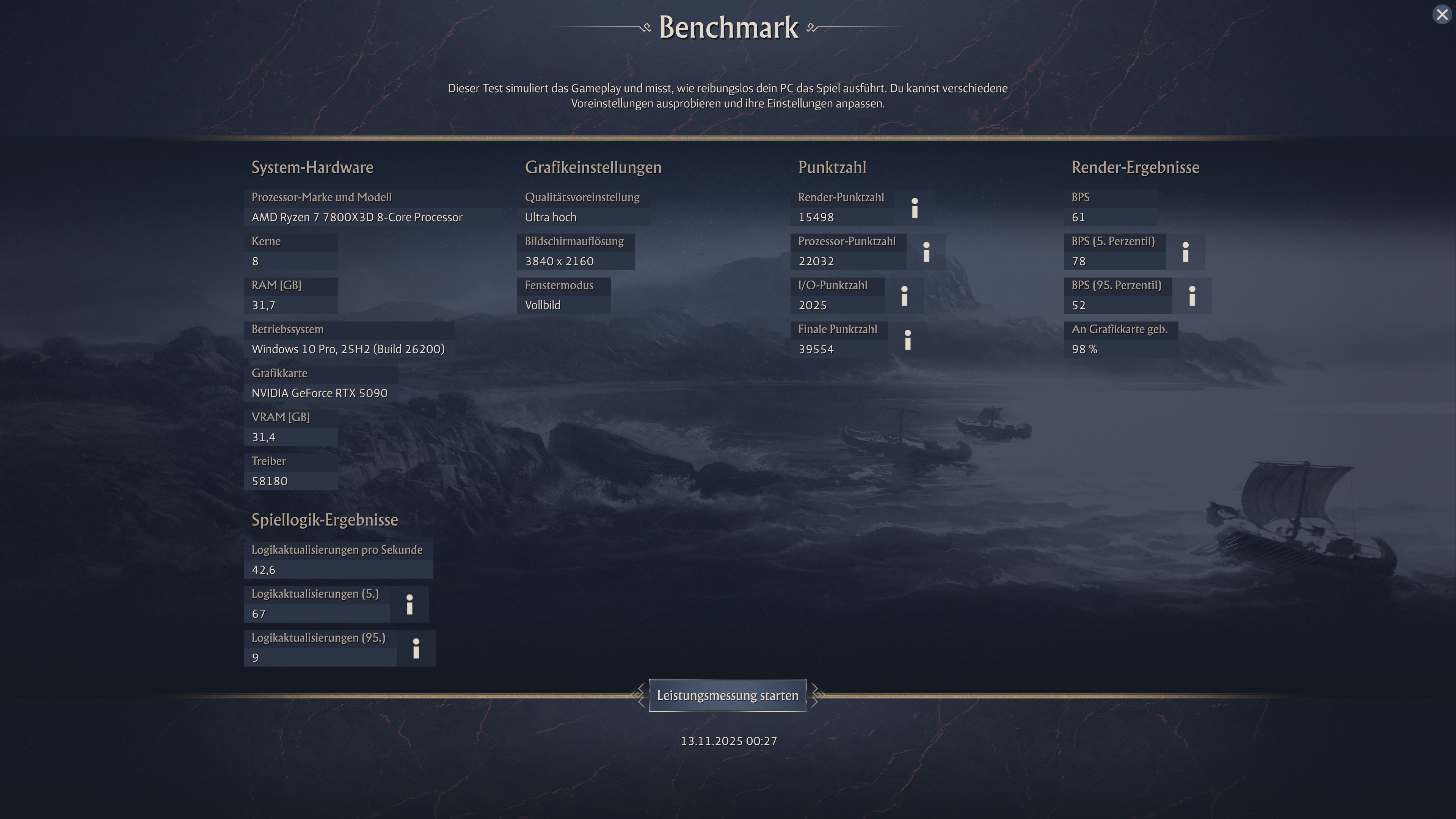 Vielleicht hat jemand ne Lösung: Egal ob nativ oder mit DLSS, egal im rahmenlosen Fenstermodus oder im Vollbildmodus, der Benchmark ruckelt in manchen Szenen extrem stark vor sich hin, die Anzahl GPU-begrenzter Frames sinkt teilweise bis auf 80%, während gleichzeitig die CPU nicht vernünftig hochtaktet (manche Kerne laufen teilweise nur mit 3,x GHz).