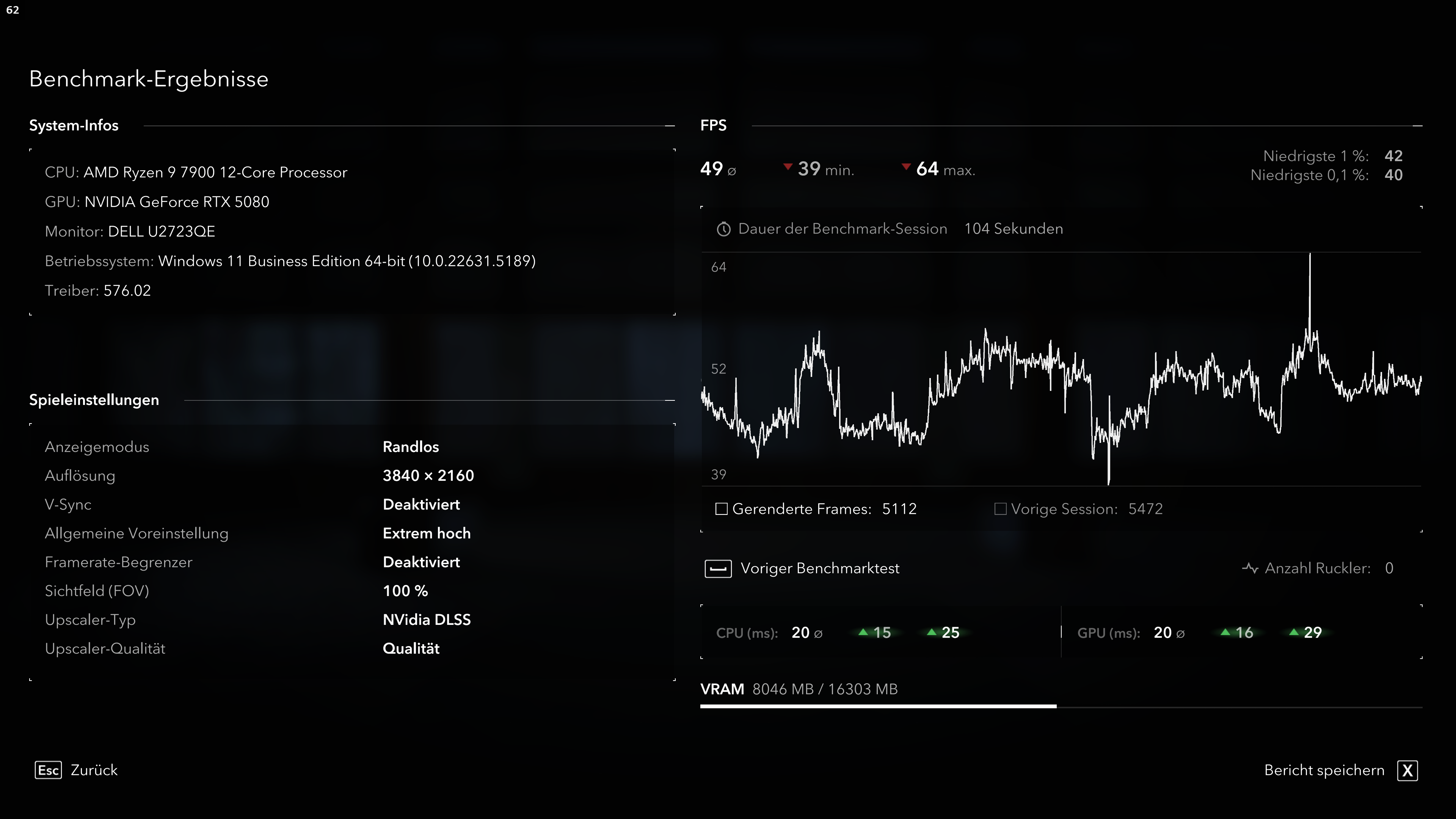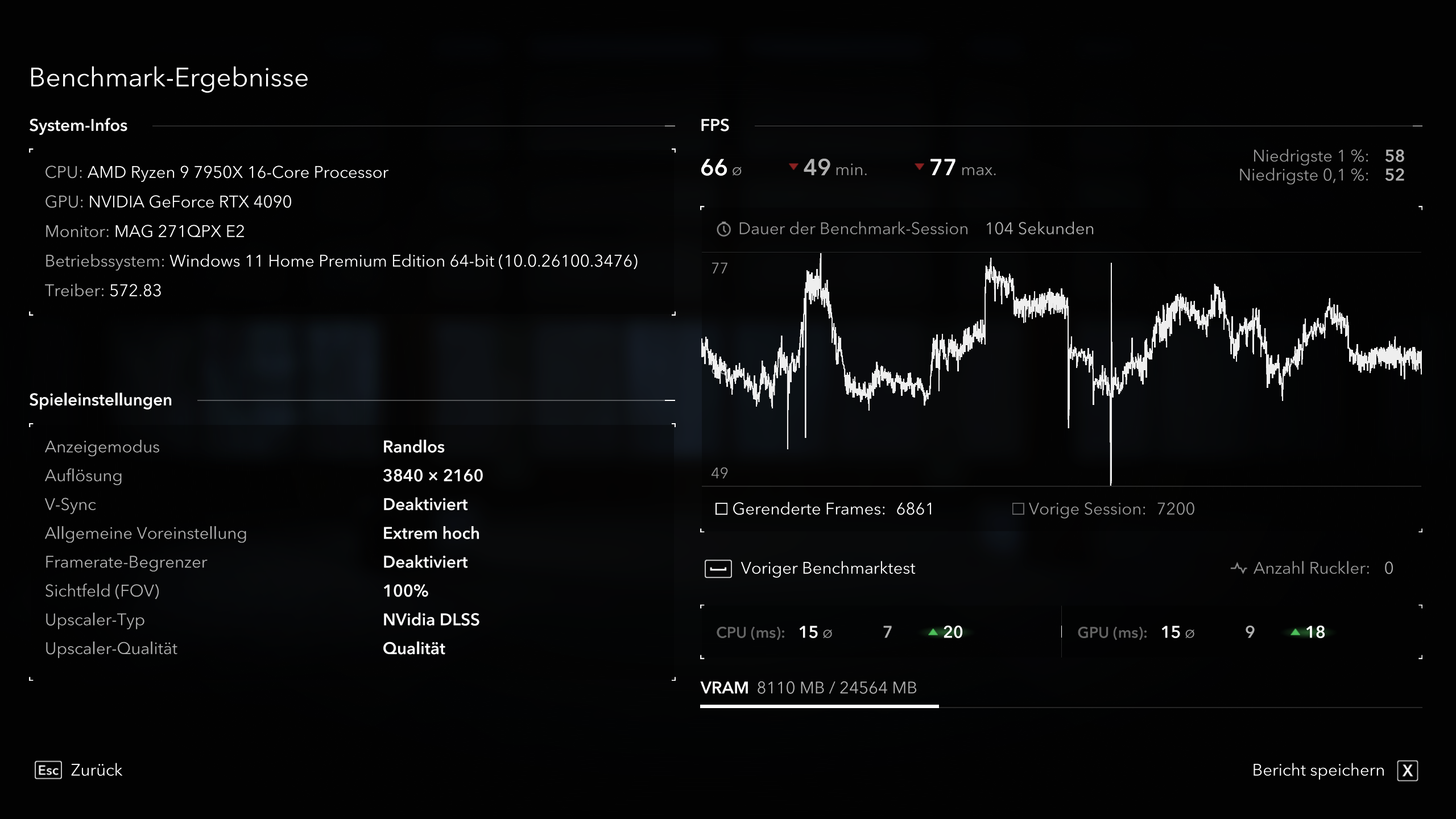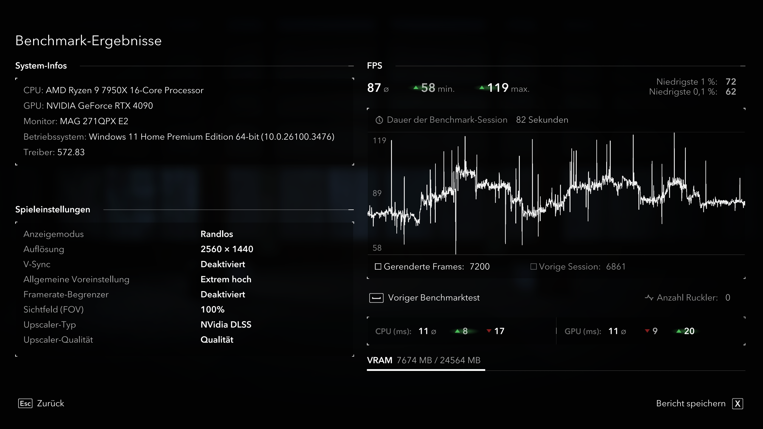 2.560 × 1.440, Preset „Extrem hoch“, RTGI, DLSS/FSR Quality, FG Aus: 79