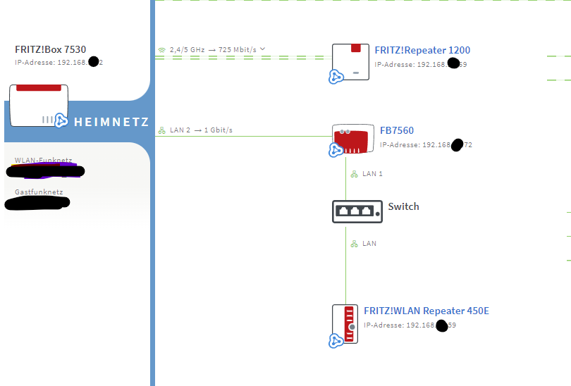 Manchmal erscheint er korrekt an LAN1 der FB angeschlossen und alle an ihm hängenden Geräte dahinter.