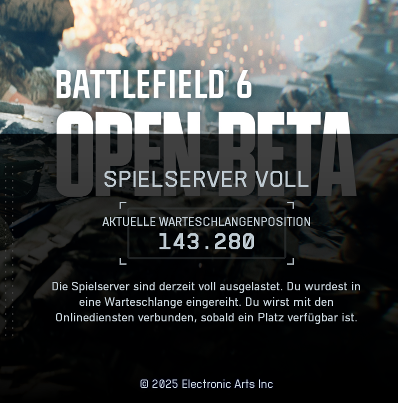 haha, okay, es ist Samstag... aber dennoch, EA kann nicht mal für eine OPEN Beta genug Server bereitstellen. Wenn ich jetzt nicht total wirr bin hatte ich das Problem noch bei keinem der letzten Teile. Kann man nur hoffen das die zum Release für ZAHLENDE Kunden genug Server bereitstellen.