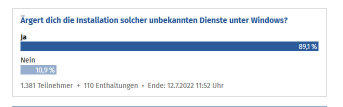 bgaupdate.exe.Dem kann ich mich nur anschließen. Deshalb steht hier mittlerweile ein MacBook Air zum ausprobieren.DireWolf schrieb:Die Richtung die Microsoft in den letzen 2 Jahren mit Win 10/11 einschlägt gefällt mir immer weniger.
