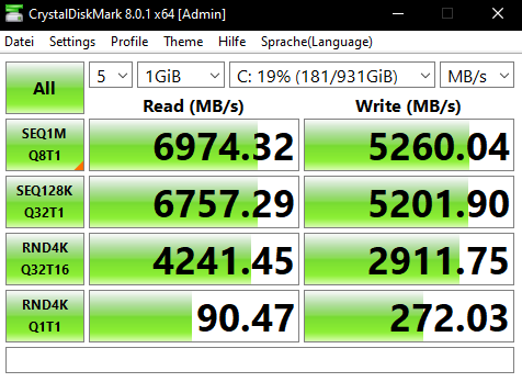 @Jan, ich habe 2x SN850, beide @4.0PCIe angebunden. Beim Benchen wird ja die volle Lese-und Schwindigkeit angezeigt, schön und gut, aber beim kopieren von Dateien untereinander, NVME zu NMVE, geht im WIndows maximal 2,2-2,3 GB/s. Mich würde interessieren wie hoch dann die Lesegeschwindigkeit ist, zB beim laden von Windows oder Programmen, kann man das messen? Falls die Lesegeschwindigkeit um den gleichen Dreh bewegt wie die Schreibgeschwindigkeit, dann frage ich mich wozu man sich derzeit eine NVME SSD 4.0 kaufen sollte.