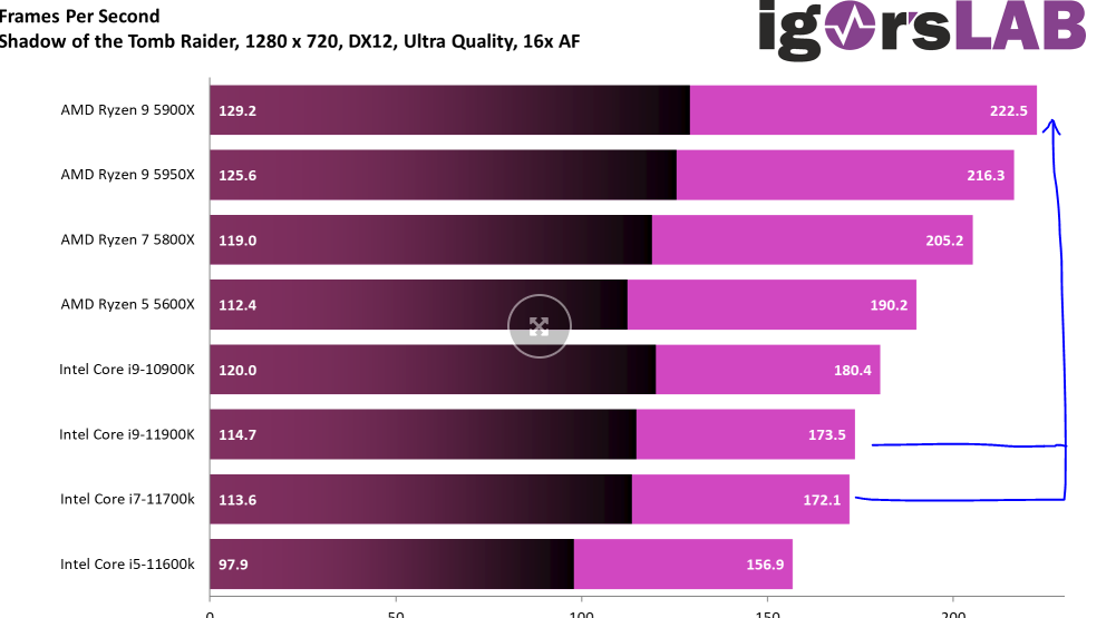Das hängt bei TombRaider aber stark vom Speicher ab was man da packt bei 5,2Ghz mit 10900k liege ich da z.B. mit RamOC bei 265 AVG CPU FPS.Die man bei genug Graka Leistung auch umsetzen kann.Zwiebelsoße schrieb:Ja, nur ist der AMD in Tombraider eigentlich nicht schneller - das ist ja gerade das Problem am der Sache.