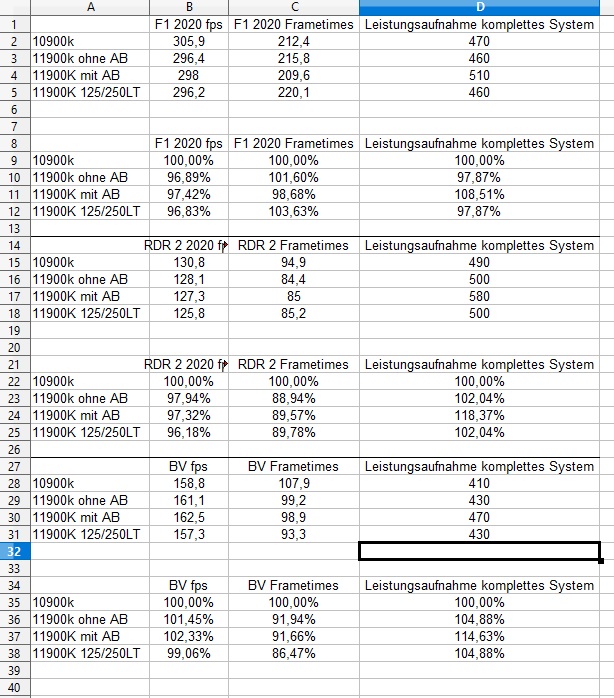 In diesen 2 von 3 Games war der Verbrauch der 11900k höher, aber die Leistungsaufnahme des Gesamtsystems niedriger.