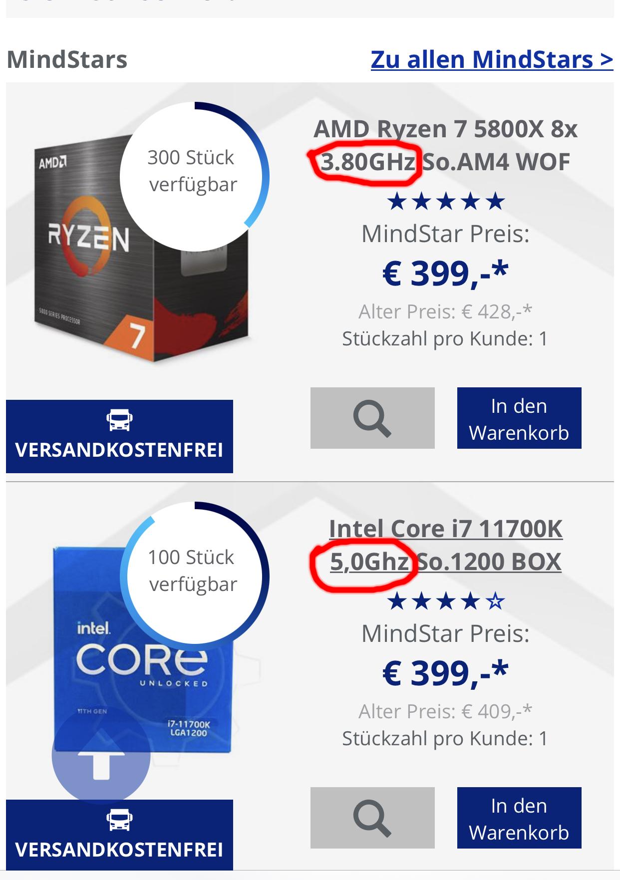 Wenn ein 5800X für 399€ vorhanden ist, verkauft der sich recht schnell, die Leute die informiert sind, wissen schon welche CPU sie kaufen wollen und das ist im Moment, in dem Preissegment auf alle Fälle nicht Intel.