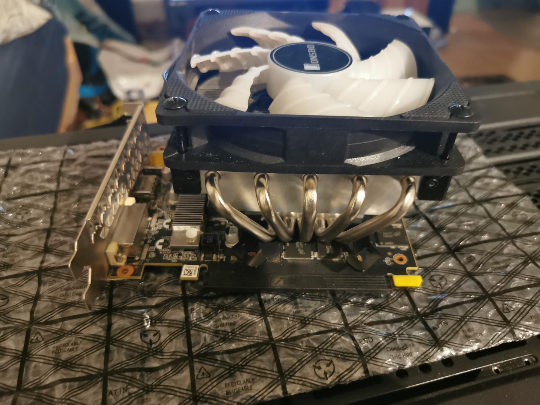 Hab einen Cpu Kühler auf der OEM 1660ti eines Acer PCs den ich bekommen habe als Teilzahlung für einen PC den ich gebaut hab.Bastle öfter solche Sachen.Für eine Evga 1080ti hab ich einen Wechselrahmen für 2x120mm Lüfter gebastelt und auf derselben Karte hatt ich einen Alphacool Yellowstone Cpu Block wie zuvor auf einer Zotac 980 Gtx