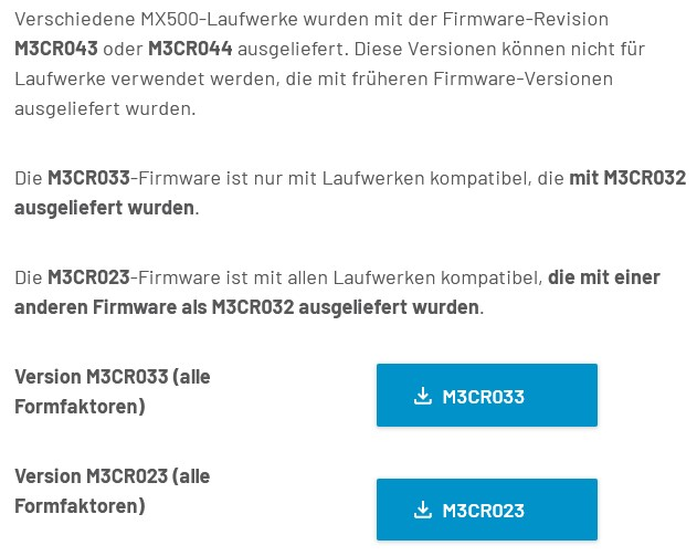 - Zur Notiz: Crucial MX500 SSD: Neue Firmware soll seltenes Problem beheben
