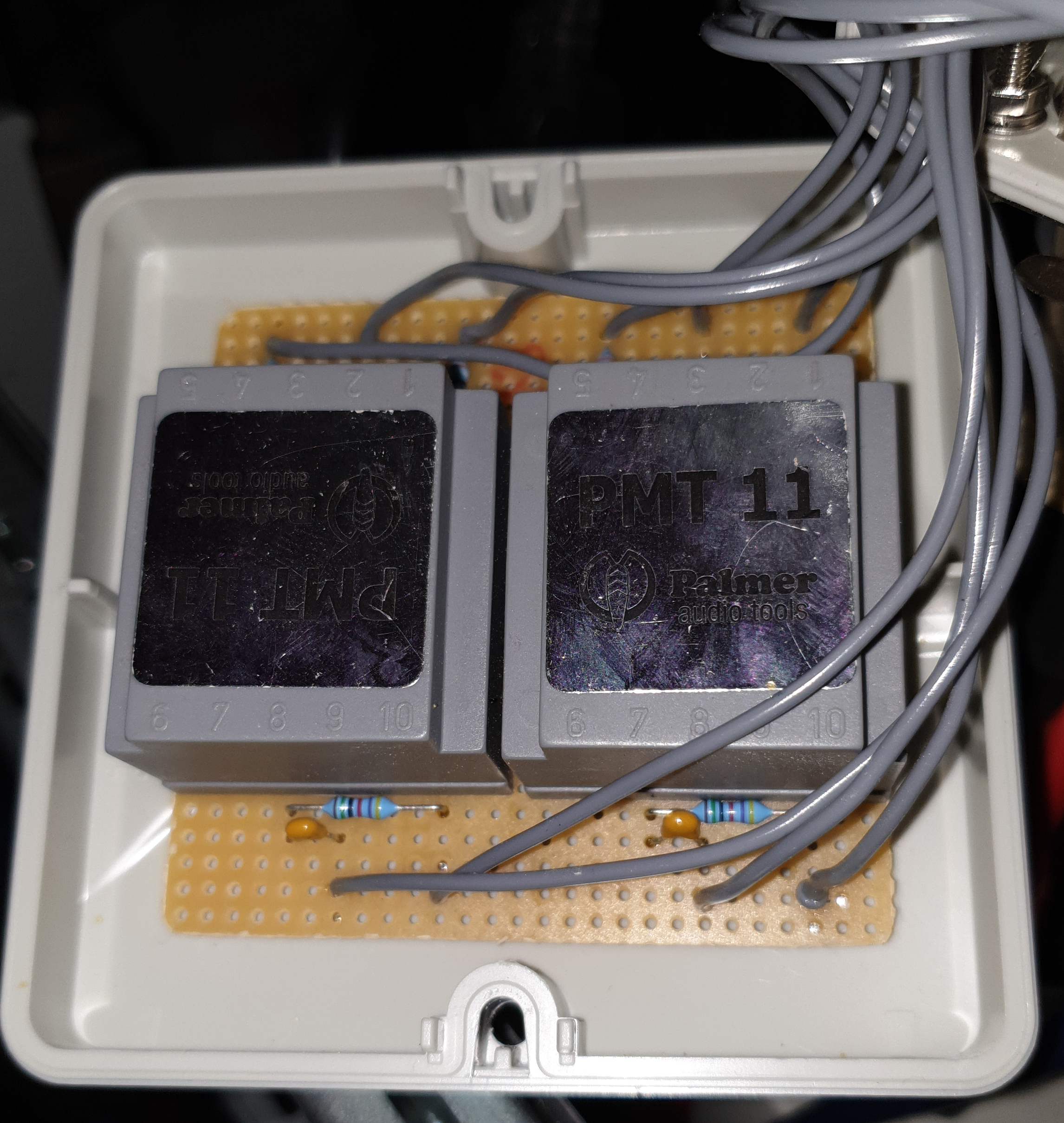 Was ich ganz gerne verwende, sind Paneleinbaubuchsen von Neutrik, Steckverbinder von Neutrik oder Amphenol. Die Plastikkästen, in die die Übertrager eingesetzt sind, sind entweder von Hensel oder els spelsberg, handelsübliche Abzweigdosen.