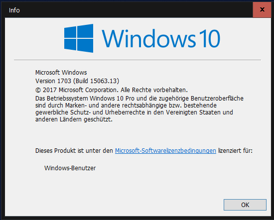 Ich hatte ja schon die Vorabversion installiert [die eben doch Final war, auch wenn hier manche wie der User Wotan es nicht glauben wollte!] und Heute noch ein kleines Update bekommen und nun ist es die Version 1703 Build 15063.13 Alles läuft so wie soll und ich bin sehr zufrieden und froh, schon Ende März 2017 eine komplette Clean Installation mit der ISO gemacht zu haben.