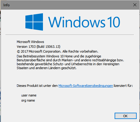 das Creators Update hat die Versions Nummer 1703 und die Build Nummer 15036