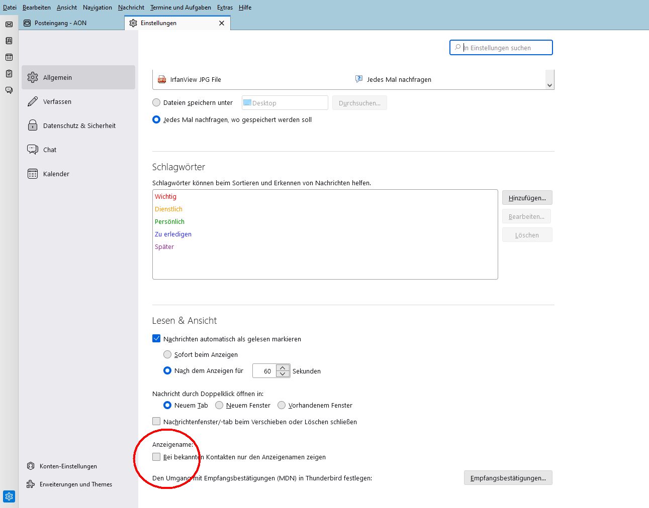 Absender, die nicht in meinem "Persönlichen Adressbuch" sind, & Spam-Mails werden ohne HTML angezeigt.