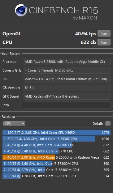 Nach dem Umbau hab ich die neueste Cinebench Version genommen. Installiert habe ich 1803 17131.191 sowie folgende Treiber: