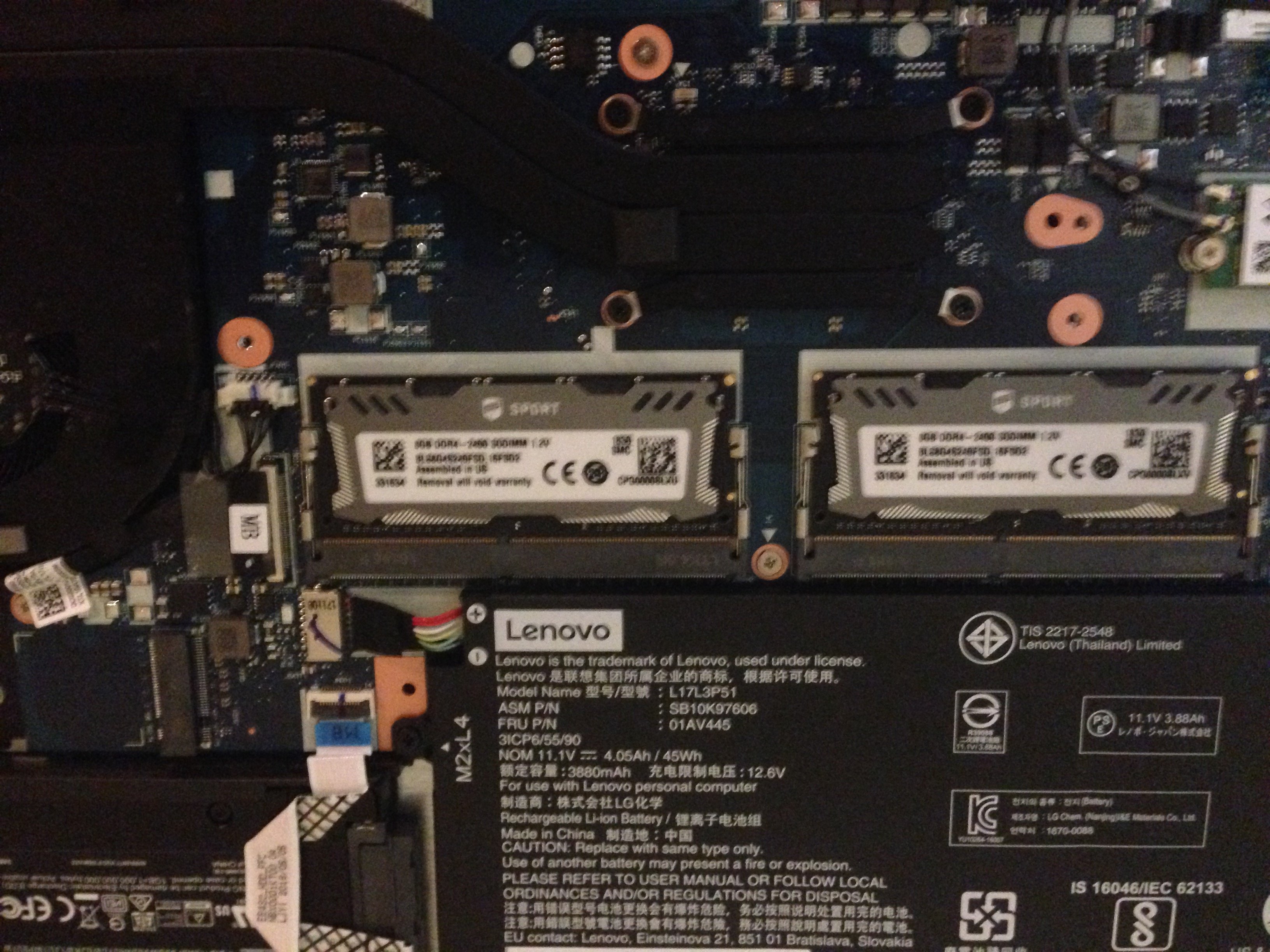Die M2 SSD habe ich durch eine M2 870 EVO ersetzt. Außerdem habe ich den 8GB Samsung Single Rank Riegel durch zwei 8GB Dual Rank Riegel ersetzt.