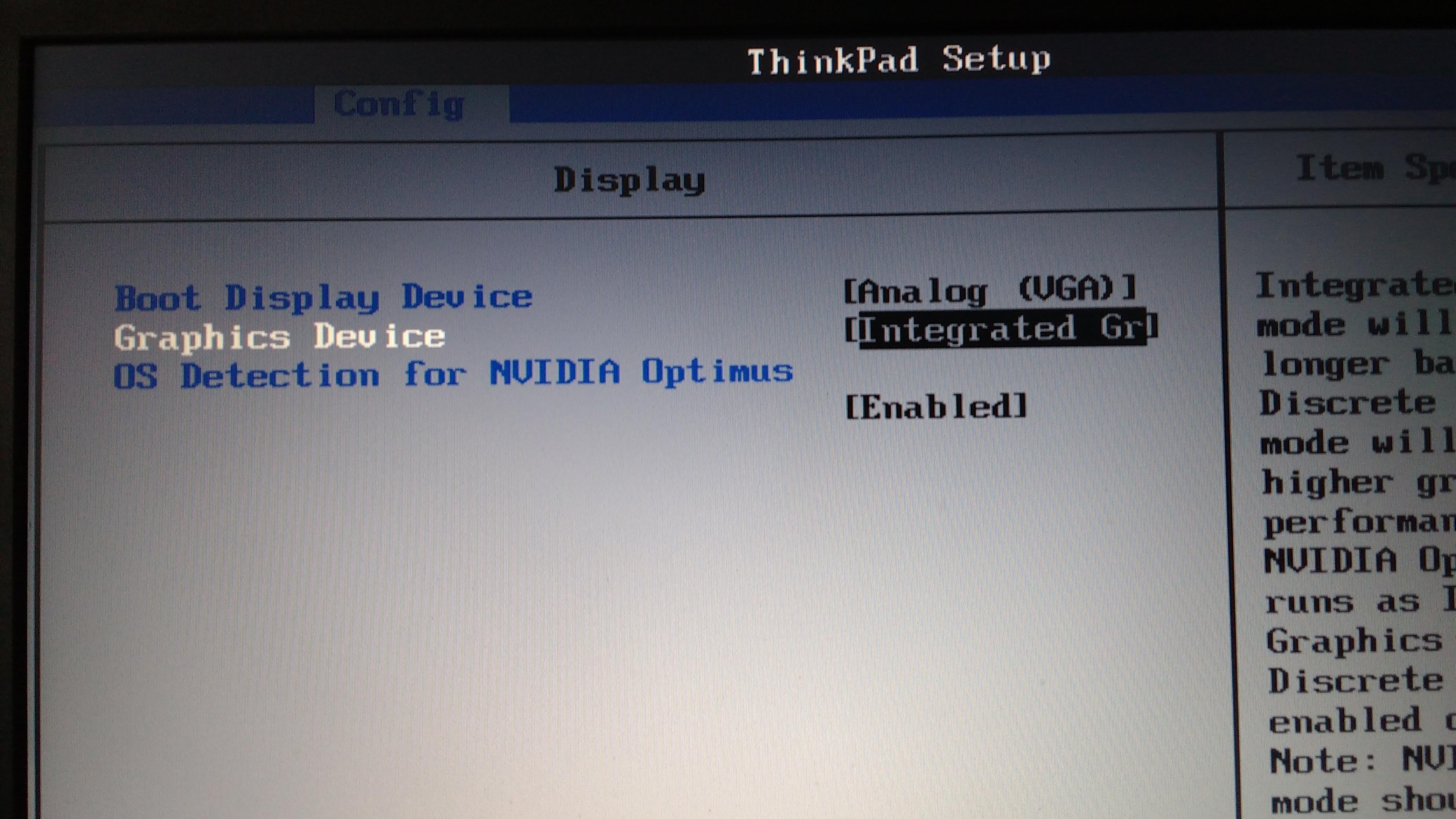 Wenn ich in meinem Lenovo T430 die dGPU im Bios deaktiviere und dann den Laptop starte passiert folgendes: