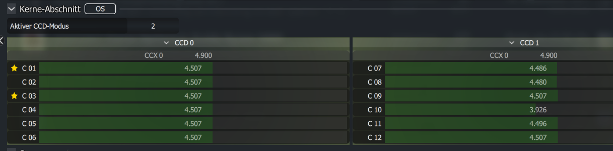 Ah ok, das ist natürlich etwas ungünstig wenn die CCDs weit voneinander abweichen. Könnte sein dass "preferred cores" dann beim 5900/5950 tatsächlich Sinn macht.Asghan schrieb: