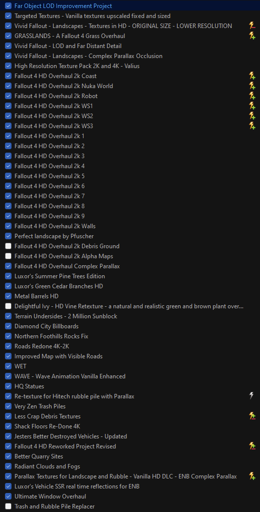 Bin total geflascht von Fallout 4. Habe jetzt in ein laufendes Save-File, alle in Welcome to Paradise empfohlenen Texturen + Color Correction + Darker Nights installiert und das Game sieht absolut genial aus. Auch der FPS Mod ist genial, spiele ohne VATS