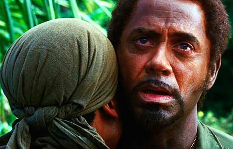 Hmm, sieht nach Tropic Thunder aus, und zwar Robert Downey Jr. als Kirk Lazarus :D