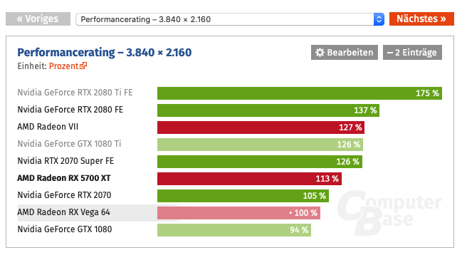 Schaut man sich aber mal dazu den tatsächlichen Performancegewinn in 4K an, dann bleibt davon noch ein Plus von 13% reinem Leistungszugewinns übrig.