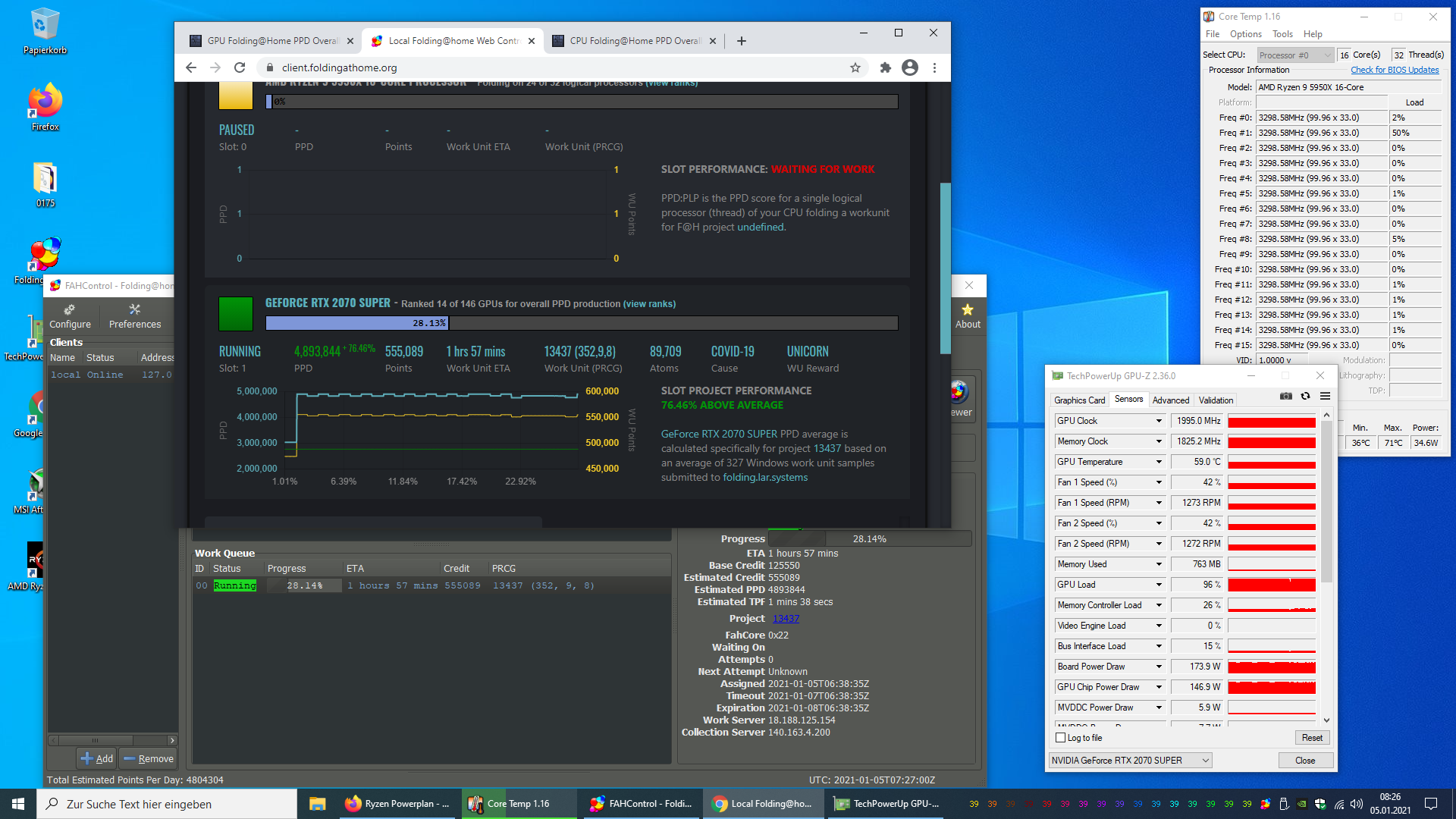 Leider eskaliert meine 2070S noch nicht so, öfters mal FAHCORE22.exe abgestürzt. Meistens dann wenn man schlafen geht, 5min später.