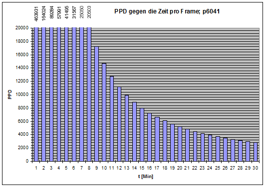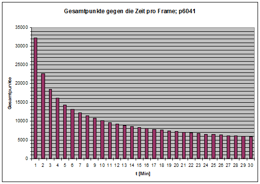 Bei p6041 stehen 20 Minuten und 5197 Punkte 10 Minuten und 14671 Punkten gegenüber. Das ist ebenfalls nicht ganz eine Verdreifachung.