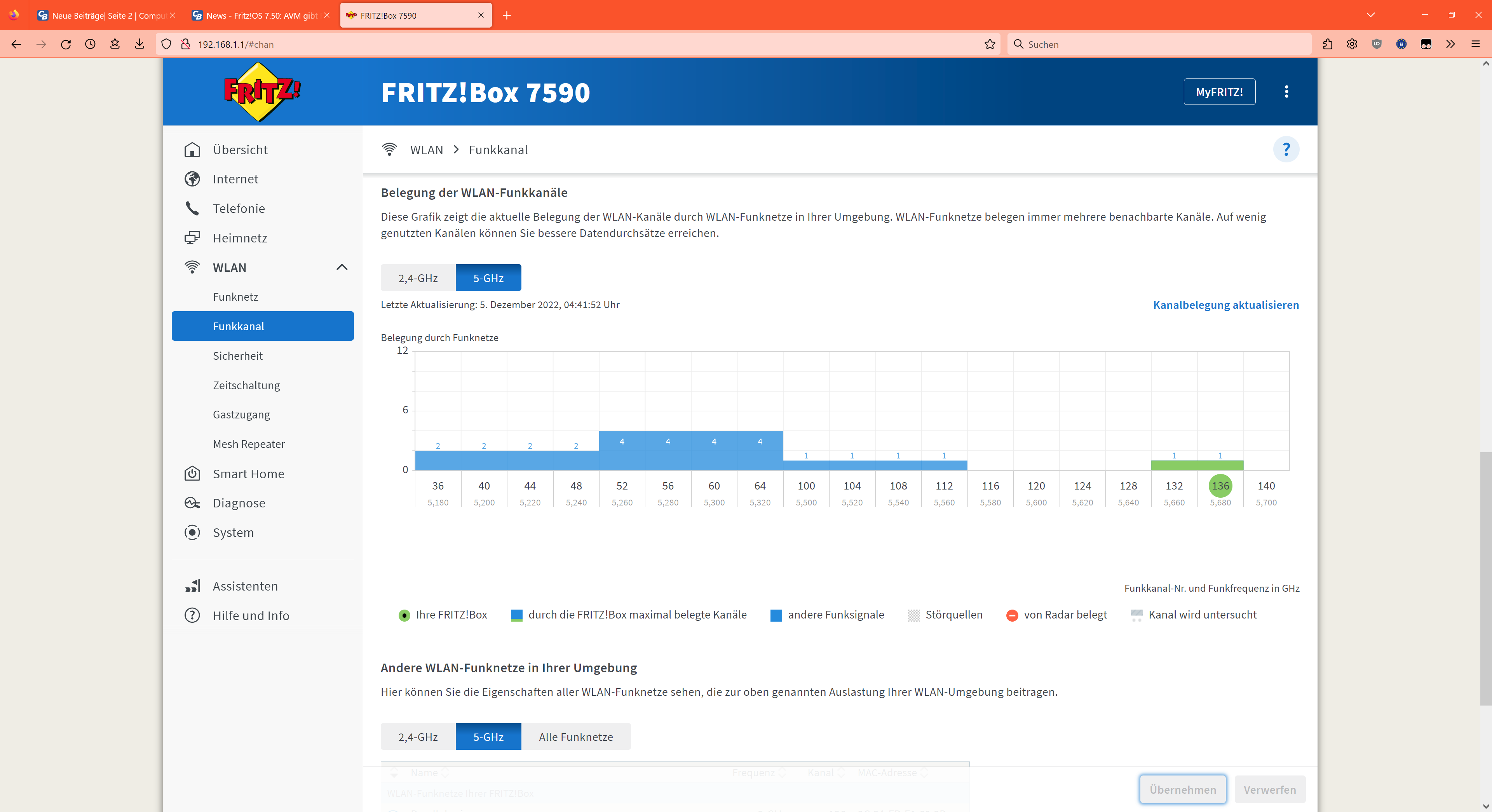 Da ich es aber vorher noch nie geprüft hatte, kann es gut sein, dass es schon immer nur 80 MHz waren, auch wenn die FB-GUI 160 MHz anzeigte?