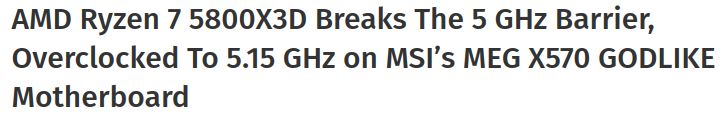 As for whether this overclock was stable or not, we are told that the AMD Ryzen 7 5800X3D with the 5.15 GHz OC was only booted up in CPU-z and no benchmarks were run.ArrakisSand schrieb: