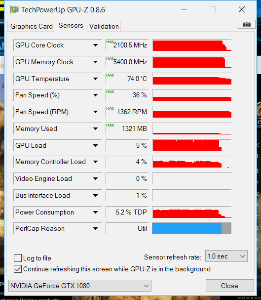 Das hätte ich bis heute Mittag auch noch unterschrieben, bzw. das ist so nach ein paar Runden Heaven, Bf4 oder GTA V in Full HD. Dann habe ich mal GTA V über 2h in 4K (und 2xaa) gezockt und Afterburner geloggt: Max. 75°C bei stabilen 1964 MHz und quasi konstanter GPU-Auslastung zwischen 99-100%. Aber ja, die meiste Zeit lag die Temperatur bei 65-68°C. Lüfter ging auf max. 51% hoch. Aber ob hörbar oder nicht, das Bild entschädigt(:t3chn0 schrieb:Deine Temperaturen sind mit der GameRockPremium aber wirklich hoch. Meine Karte wurde out of the Box, unter Volllast gerade mal 65°C warm bei 42% Lüfter, das war unhörbar.