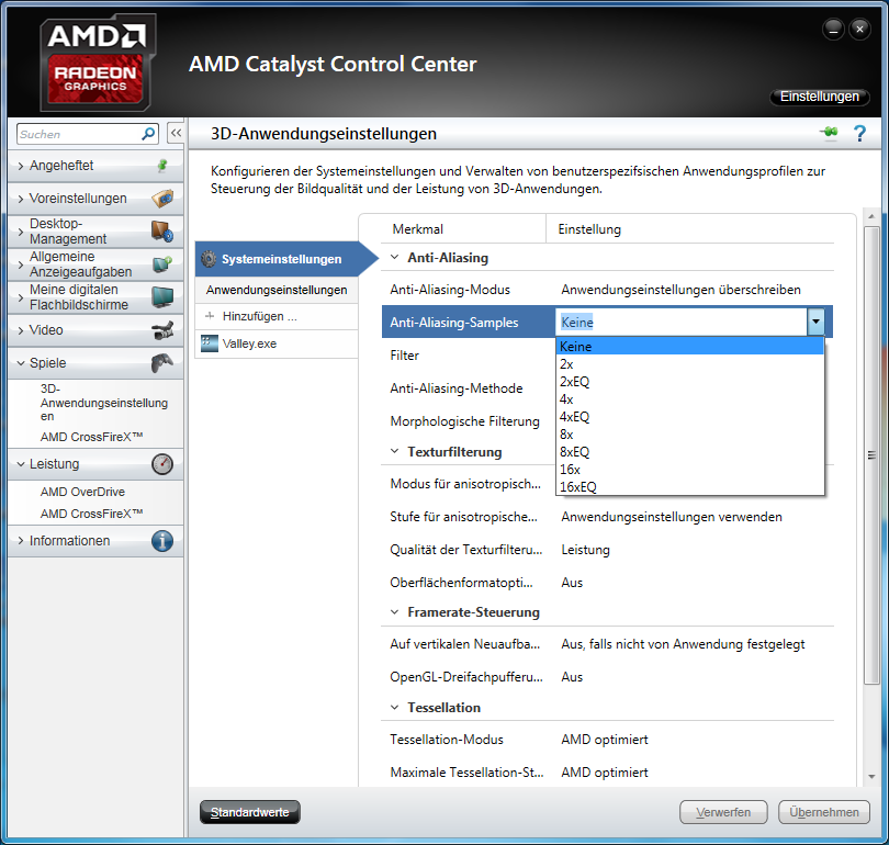 Nein wo kann ich das einstellen? mir kommt vor dass wenn ich die einstellungen im catalyst manager treffe sich nichts ingame verändert. habs aber mit GTA5 noch nicht probiert.
