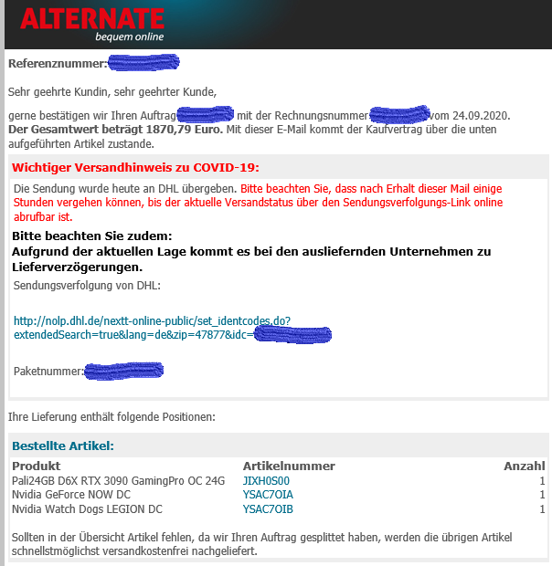 toti87 schrieb:Ich hab von Alternate für die Zotac schon die Tracking Nummer. Hab diesmal aber auch Express Versand genommen.