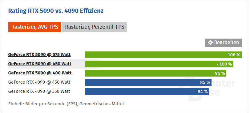 oder, bei 400Watt der 5090 vs. 450Watt der 4090: