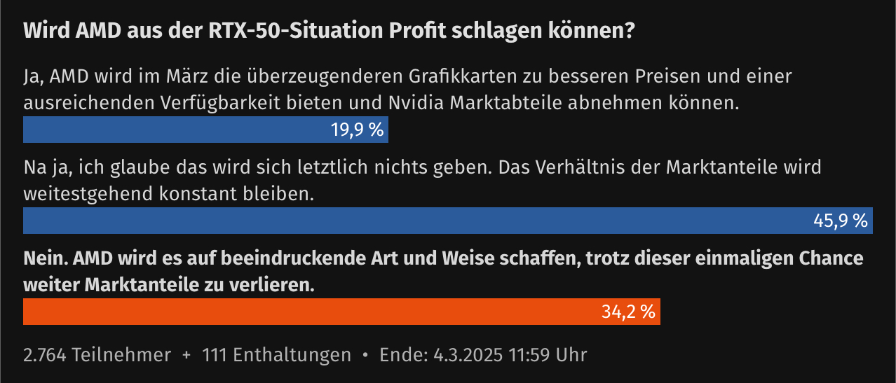 Kein Wunder , dass Amd keine Markanteile zurück holen kann , wenn alle so denken werden ....MalWiederIch schrieb:Hoffen wir auf einen guten Preis, ansonsten wird man mit 7900XT-Leistung niemanden abholen können …