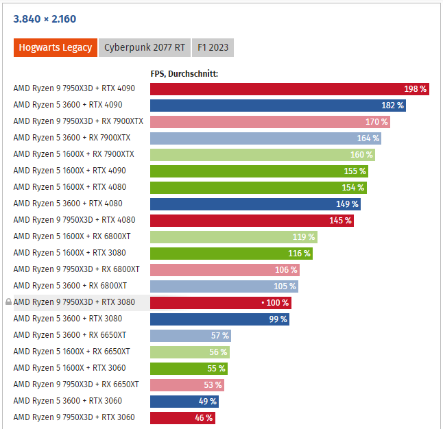 Was ich nicht verstehe: Warum ist ein R5 1600x mit 3080 schneller als der 7950x3d in UHD?
