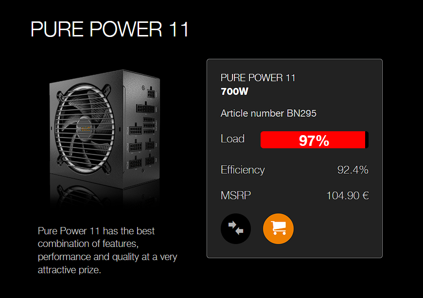 Das mag stimmen und ein 500W Netzteil würde hier reichen... wenn es aber neue Netzteile mit höheren Watt gibt, wo der Preisunterschied sehr gering ist .... kann man auch gleich das Größere nehmen, und am effizientesten ist ein Netzteil sowieso bei 50% Auslastung.Dandelion schrieb:BeQuiet / Computerbase-Wattmänner so: