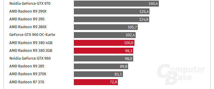 Die GTX 960 scheint am meisten 'gelitten' zu haben. Zur Einführung noch teurer und leistungsmässig auf Augenhöhe zur R9 380 -wobei sie durch die deutlich niedrigere Leistungsaufnahme gepunktet hat - hat die einiges (~14%) an Boden verloren.